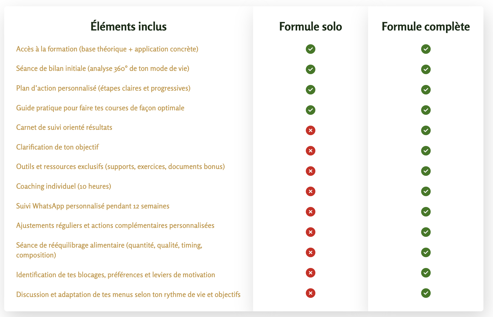 Selon ton niveau d'engagement et tes objectifs, tu peux choisir la formule SOLO ou la formule COMPLÈTE